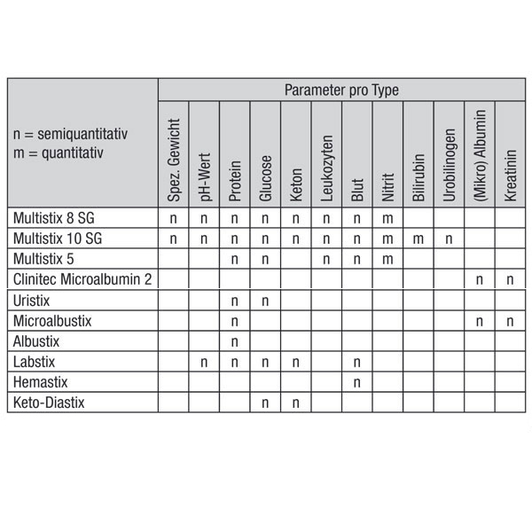 Produktinformationen "Harn Diagnostik von Bayer / Siemens Multistix Mikroalbumin Clinitek, Multistix 10 SG"