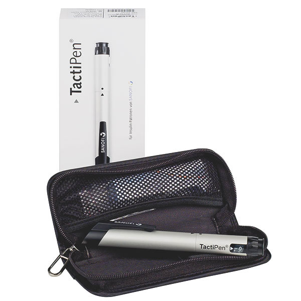 Der wiederverwendbare Insulinpen von sanofi-aventis macht das Leben mit Insulin leichter. Er ist für alle Insuline von sanofi-aventis geeignet. Ob jung oder alt, Typ-1- oder Typ-2-Diabetiker, der TactiPen erfüllt individuelle Bedürfnisse der Diabetespatienten. Mit dem TactiPen lassen sich bis zu 60 Insulin-Einheiten in 1er Schritten einstellen. Die Dosis lässt sich durch einfaches Drehen des Dosierrings bestimmen. Für die tägliche Anwendung bietet der TactiPen viele Vorteile: Das extra große Dosierfenster macht eine Injektion genau und zuverlässig. Der