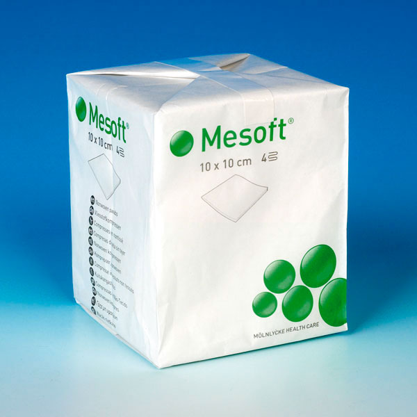 Kompressen aus Vliesstoff sind die kostensparende Alternative zu konventionellen Mullkompressen. Hohe Saugfähigkeit, Weichheit und Partikelarmut sind Haupteigenschaften und werden vor allem zur Absorption, Desinfektion und Polsterung eingesetzt. Im Vergleich zu Mullkompressen absorbiert Mesoft mindestens 50 % mehr Flüssigkeit oder Exsudat. Die Produktionstechnologie und die Mischung von Fasern resultieren in einem sehr weichem Produkt.
